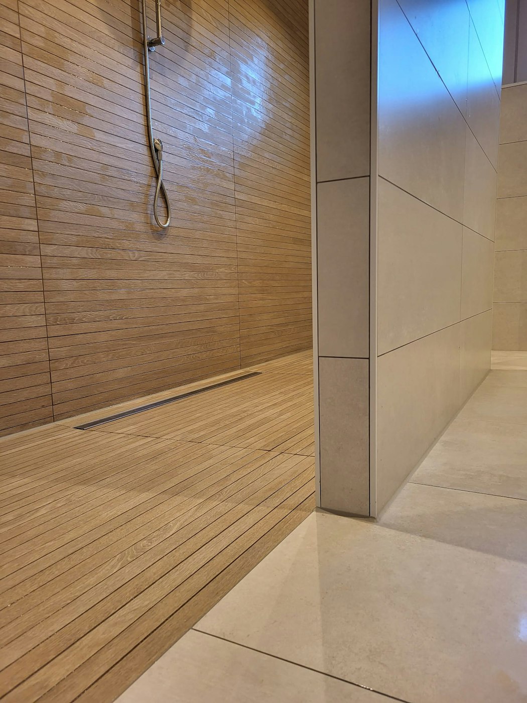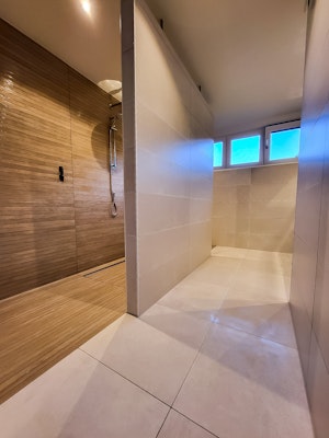 Dit in combinatie met een warme 90x30 tegel op de wand en een 60x60 tegel op de vloer.
